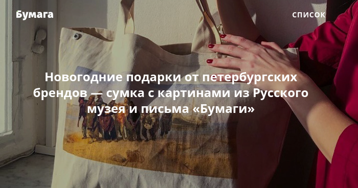 Футболка с изображением башни на Тихорецком проспекте, косметика цвета кресел в Александринском театре, шоколад с японскими гравюрами из Эрмитажа и произведения молодых художников — «Бумага» выбрала десять подарков к Новому году от петербургских брендов.