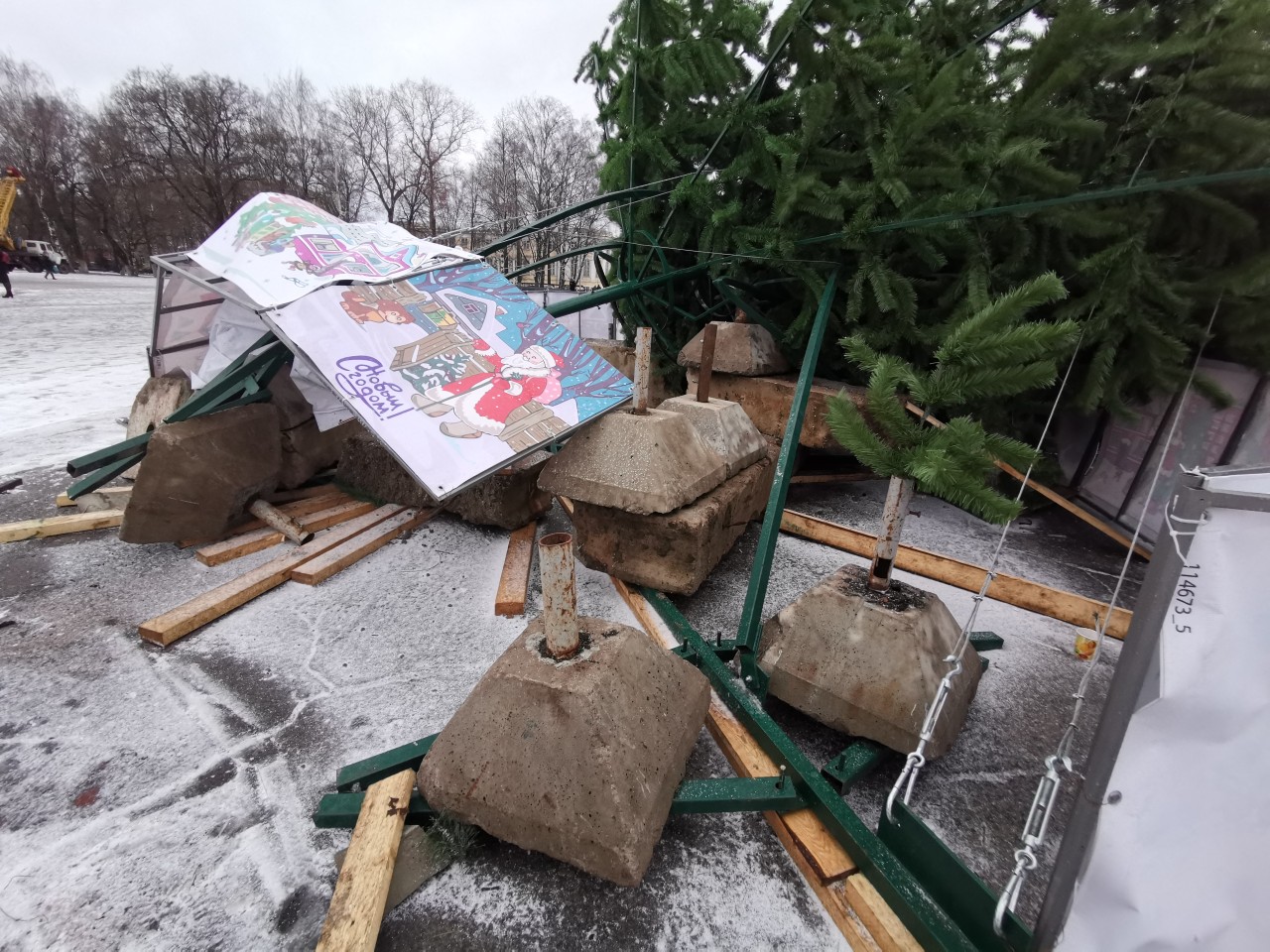 Вологда: главную новогоднюю ель города уронил сильный ветер