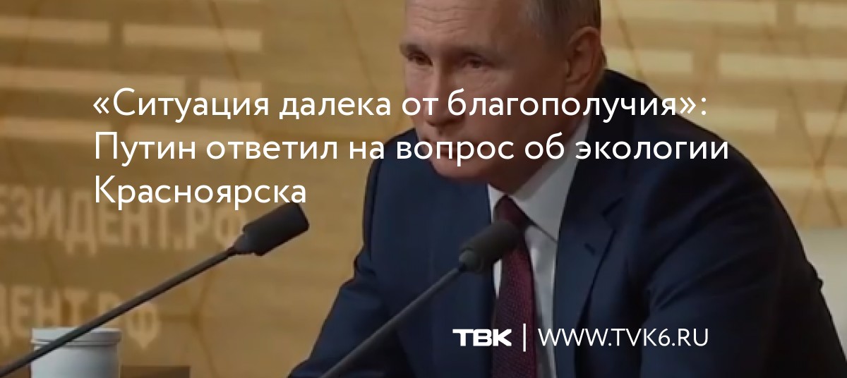 «А по городам, их 12, в которых наиболее неблагоприятная ситуация, в том числе по Красноярску, приняты отдельные программы. Там представители промышленности должны будут защитить соответствующие планы своего развития. И руководители регионов должны будут соответствующим образом поработать. Такие планы должны будут выйти по Красноярску, мы проконтролируем их. Я хочу вас заверить, что мы не оставим этот вопрос, будем напряженно над ним работать».