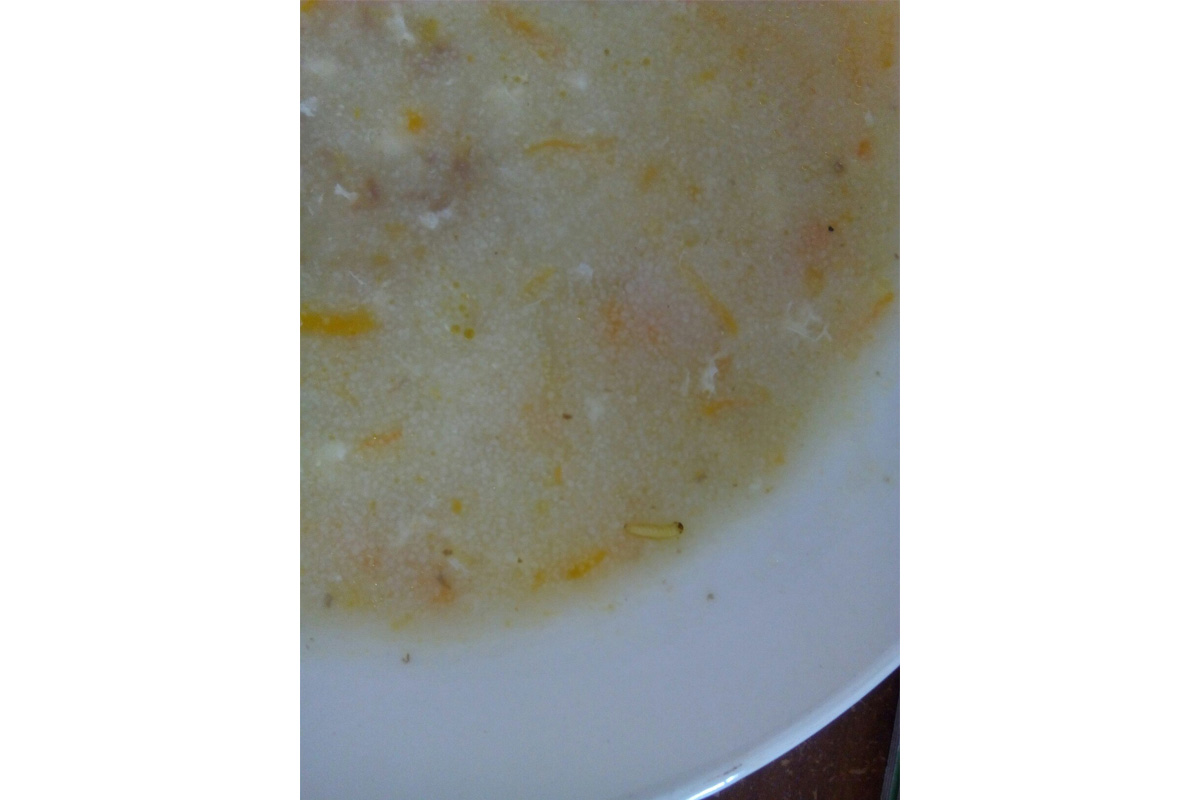 – Нам в обед принесли вот такой суп, – показывает Мария Корбатова фотографию, где в тарелке плавает червяк. Она лежала с двухлетним ребенком «инфекционке» три года назад. – Этот червяк в супе – просто жесть! Мы тогда скандалить не стали, просто вылили и все, потому что ребенок был постоянно под капельницей, постоянно рвало, мы решили пускай откапают нас хотя бы, чтобы это все остановить и уйти оттуда. В остальное время ребенка кормили едой, которую ему вообще нельзя: у него рвота и температура под 40, а ему принесли молочную кашу! А передачи из дома запрещены, больше есть нечего. На вторые сутки мы написали отказ, потому что дочку рвало постоянно этой едой, которую ей просто нельзя!