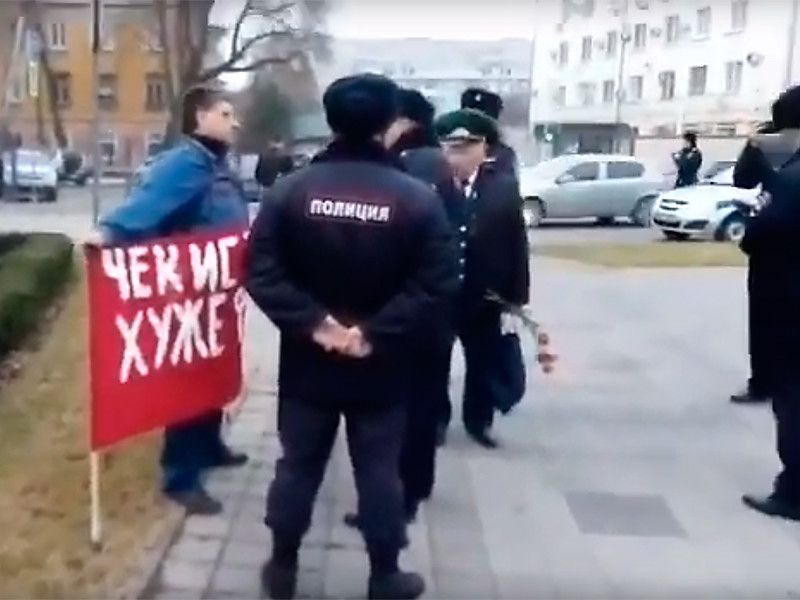 В Краснодаре возле памятника Дзержинскому задержали пикетчика с баннером "Чекист хуже фашиста" (ВИДЕО)