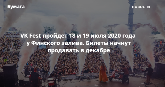Музыкальный фестиваль VK Fest-2020 пройдет в Петербурге в шестой раз 18 и 19 июля в парке 300-летия. Об этом сообщили в пресс-службе организаторов.
