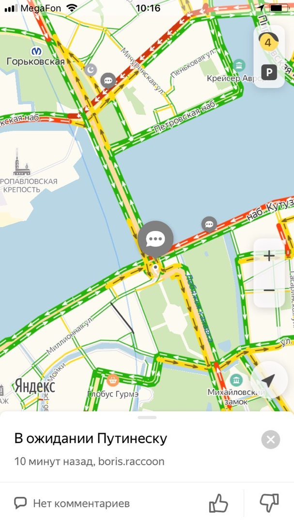 О затруднениях, в частности, сообщают водители рядом с «Адмиралтейской», у «Технологического института» и на Троицком мосту. О перекрытиях сообщений пока нет, однако движение замедляют светофоры и сотрудники ГИБДД.