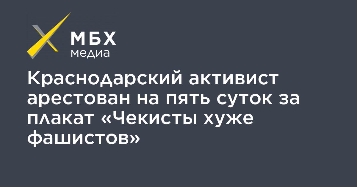 Краснодарский активист арестован на пять суток за плакат «Чекисты хуже фашистов»