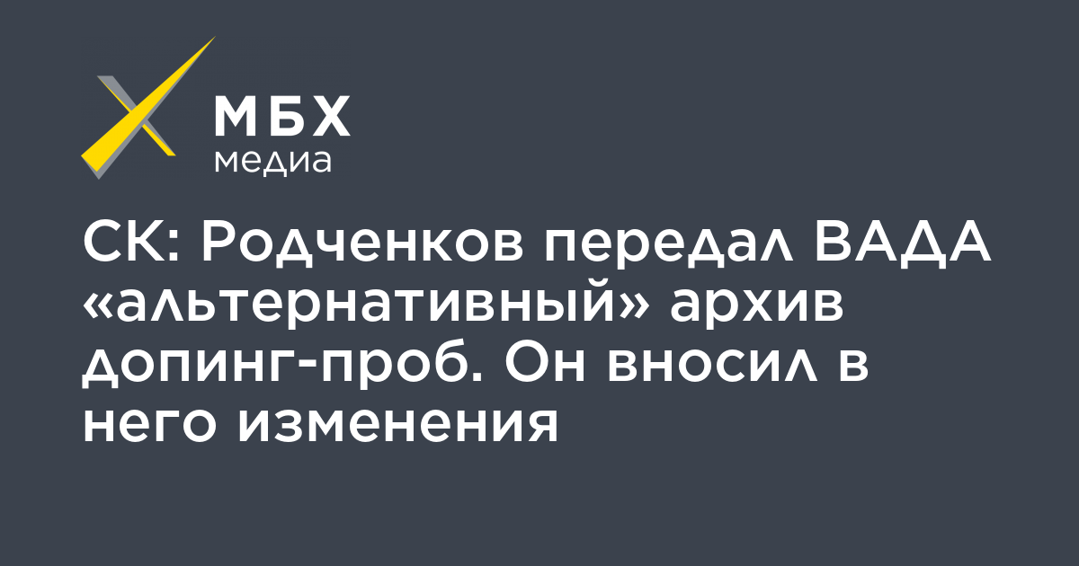 СК: Родченков передал ВАДА «альтернативный» архив допинг-проб. Он вносил в него изменения