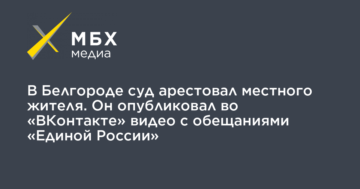 В Белгороде суд арестовал на пять суток местного жителя Максима Осетрова, который опубликовал у себя во «ВКонтакте» видео о том, что обещала «Единая Россия» в 2002 году, говорится в материалах Октябрьского районного суда города.