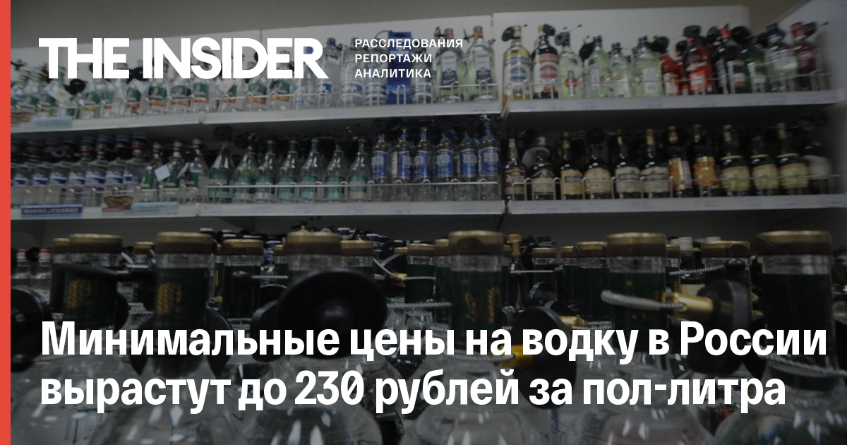 Минимальная розничная цена на водку увеличится на 7% — до 230 рублей за бутылку объемом 0,5 литра готовой продукции с текущих 215 рублей. Также повысится оптовая и закупочная цена у производителя — до 199 и 193 рублей соответственно.