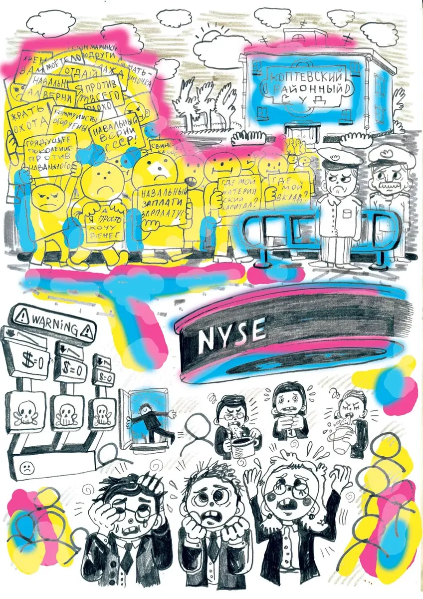 Как связаны иски к организаторам летних протестов в Москве с мировыми кризисами? Комикс