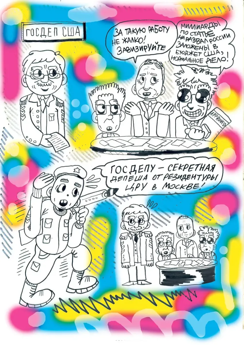 — У меня этот комикс вызвал некоторые сомнения: не льет ли он воду на мельницу официальной пропаганды — там ведь Россия опять самая умная. Ну, будем надеяться, что телевизор смотрит все меньше наших граждан и к нам возвращается чувство юмора.