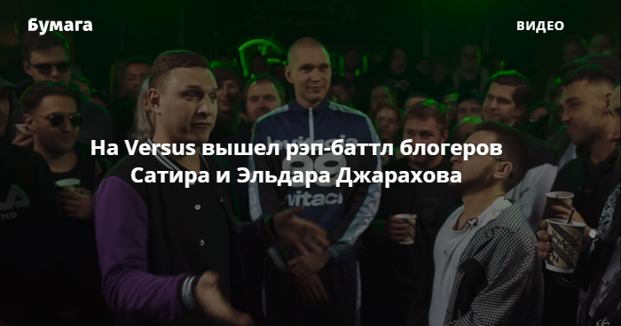 На ютьюб-канале Versus Battle вышел рэп-баттл новосибирского блогера Ильи «Сатира» Шабельникова и петербургского блогера и музыканта Эльдара Джарахова. Они баттлились без битов.
