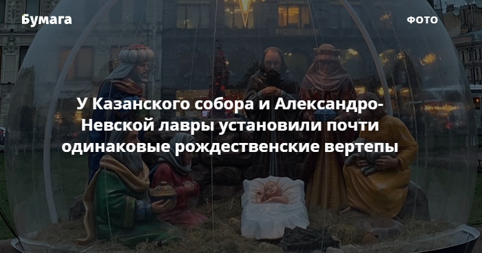 Около Казанского собора и на территории Александро-Невской лавры установили почти одинаковые рождественские вертепы — композиции из объемных фигур, которые изображают сцену рождения Иисуса Христа.