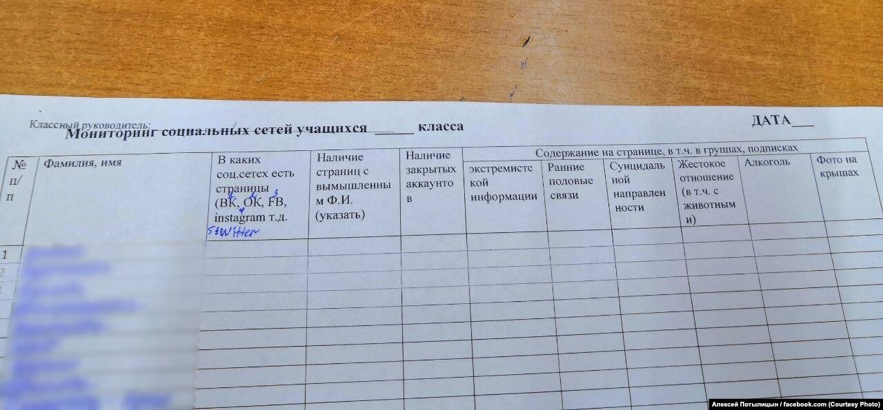 Дирекция школы №1 Абакана заявила, что таблица составлена в помощь педагогам на основе рекомендаций управления образования Хакасии. Один из родителей, предавших эту информацию огласке, рассказал Радио Свобода, что учителя эти таблицы заполнили, сдали, но больше их не заставляли лезть в соцсети учеников.