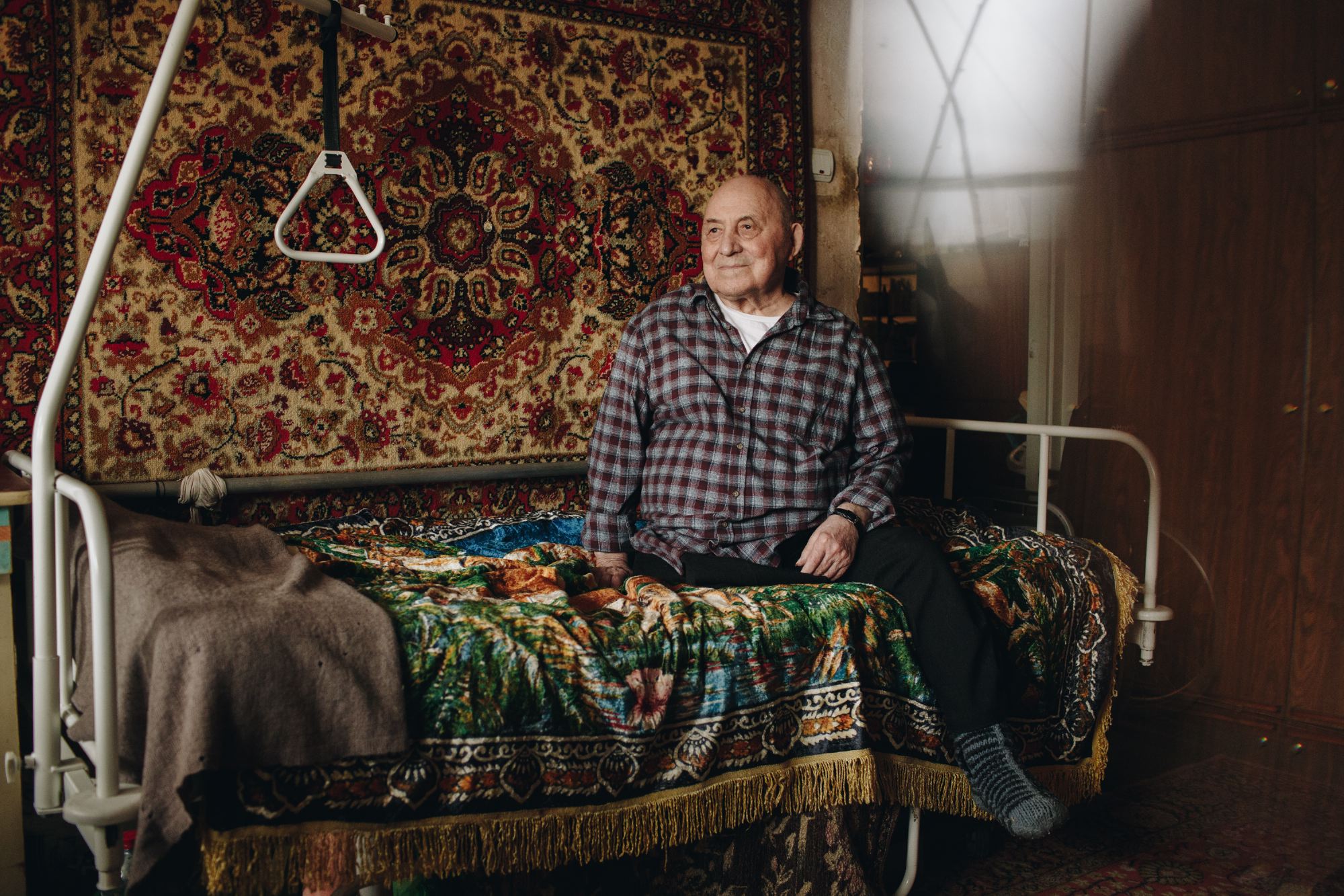 Василий ВасильевичФото: Екатерина Резвая для ТД О благотворительной организации «Каритас» Елена узнала от знакомой. Обратилась — и сотрудники или медсестры «Каритас» начали консультировать ее еще в те два месяца, когда Василий Васильевич лежал в больнице. Приехали на выписку, подарили инвалидную коляску (ждать аналогичную от государства пришлось целый год), сопроводили домой и там, уже на месте, разработали план, что делать дальше: объяснили, что нужно расширить дверной проем из комнаты в коридор, чтобы проезжала коляска, помогли сделать перестановку. Перед отъездом установили специальную кровать для лежачих больных, на которой Василий Васильевич спит и сейчас. А еще обучили обращению с лежачим больным, благодаря чему теперь миниатюрная и хрупкая Елена сама ловко помогает крепкому и тяжелому отцу.
