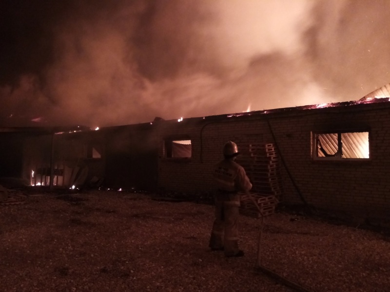 Общая площадь горения составила 1,2 тыс. кв. м. Огонь уничтожил крышу здания, готовые матрасы и оборудование производственного цеха. Пострадавших людей нет.