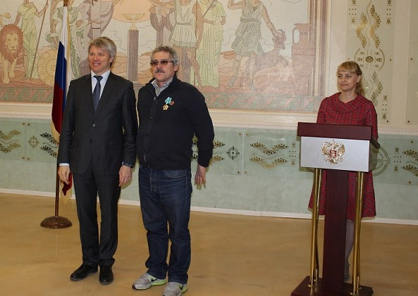 Нынешний министр спорта Павел Колобков вручает орден тогдашнему руководителю Московской антидопинговой лаборатории Григорию Родченкову. Фото: Государственный музей спорта