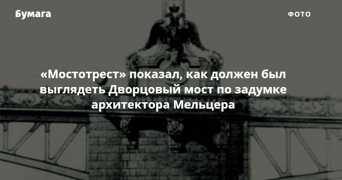 «Мостотрест» в честь дня рождения Дворцового моста показал, как должна была выглядеть переправа по проекту архитектора императорского двора Роберта-Фридриха Мельцера.