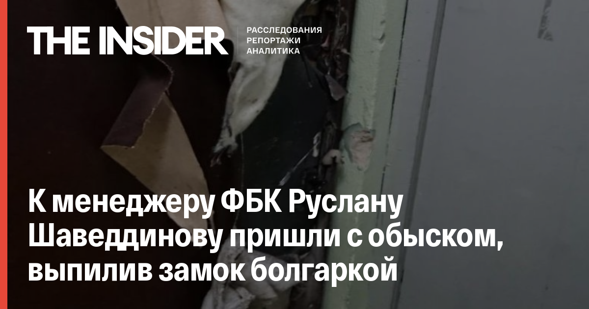 К менеджеру Фонда борьбы с коррупцией Руслану Шаведдинову пришли с обыском, разодрав обивку входной двери и выпилив замок болгаркой. Об этом сообщают на своих страницах в Twitter его коллеги. По их словам, его принудительно увезли в Следственный комитет, никаких повесток он не получал, а в юридической помощи или звонке ему отказали.