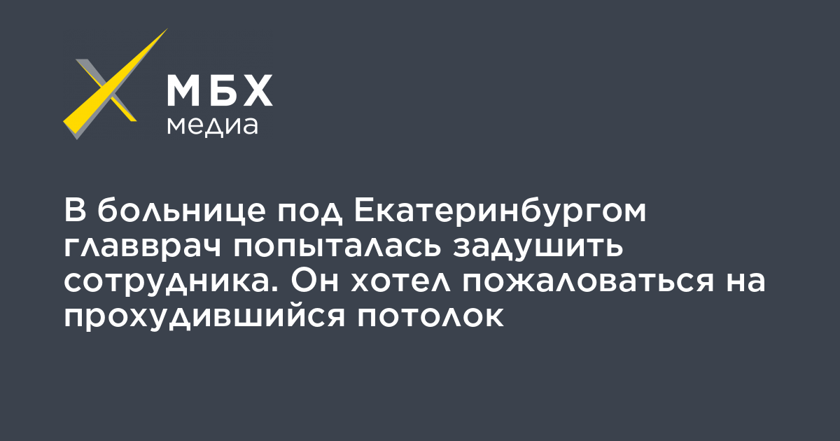 В городе Богданович Свердловской области главный врач городской больницы Елена Вдовина попыталась задушить сотрудника больничной прачечной Владимира Гаврилова из-за того, что он решил пожаловался на условия работы, об этом он сообщил «МБХ медиа».