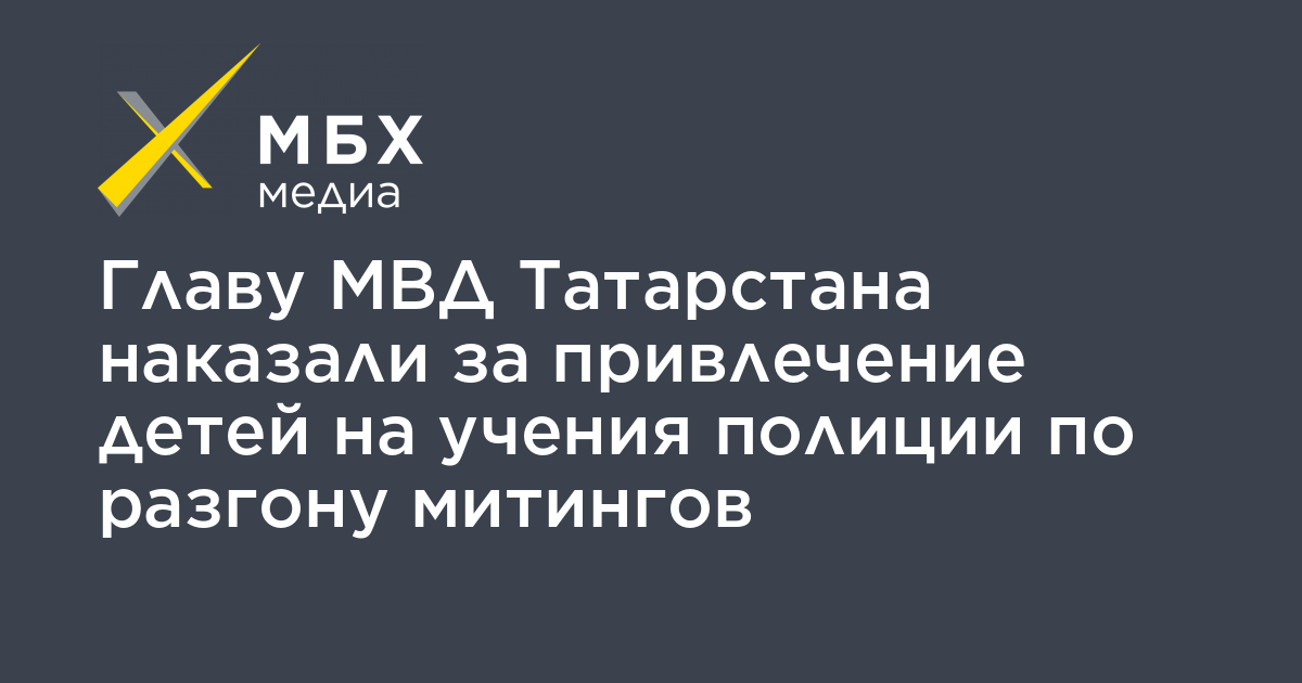 Глава МВД Татарстана дисциплинарно наказан за привлечение детей на учения полиции по разгону митингов, организаторы мероприятия будут уволены. Об этом пишет РИА Новости со ссылкой на заявление Владимира Колокольцева.