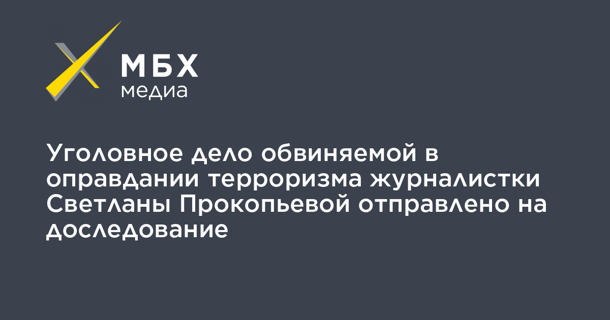 Прокуратура Псковской области отправила уголовное дело обвиняемой в оправдании терроризма псковской журналистки Светланы Прокопьевой на доследование. Об этом «МБХ медиа» сообщила ее адвокат Татьяна Мартынова.
