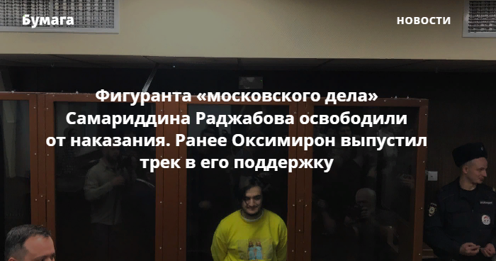 В ноябре Оксимирон выпустил трек в поддержку фигурантов «московского дела». В записи рэпер использовал голос Раджабова.