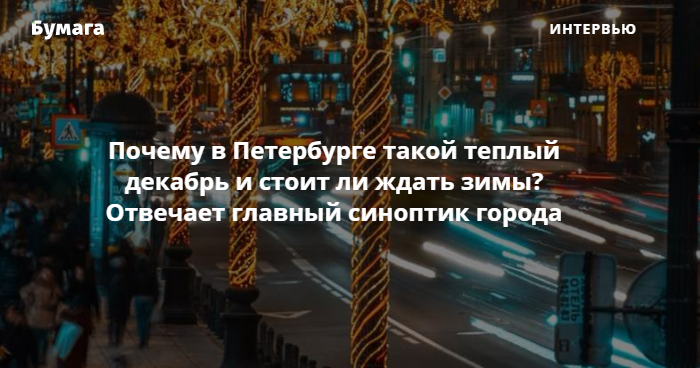 — Этот декабрь действительно аномально теплый. Думаю, он войдет в пятерку самых теплых в Петербурге за всю историю инструментальных наблюдений с 1881 года.