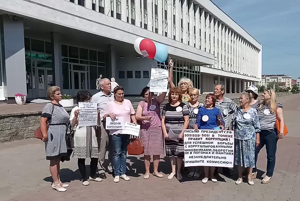 В июне 2017 группу томских пенсионерок задержала полиция после записи видеообращения к Владимиру Путину у здания администрации Томской области. За якобы несанкционированный пикет их оштрафовали. В своем послании пенсионерки просили президента помочь им в борьбе с коррупцией в правоохранительных органах.