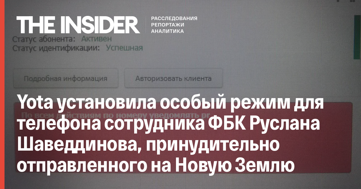 Сейчас при звонке на номер Руслана сообщается, что абонент находится не в сети. Также к номеру Шаведдинова прикреплена плашка с пометкой «о всех действиях по номеру сообщать в PR». По словам источника The Insider в Yota, он видит это впервые.