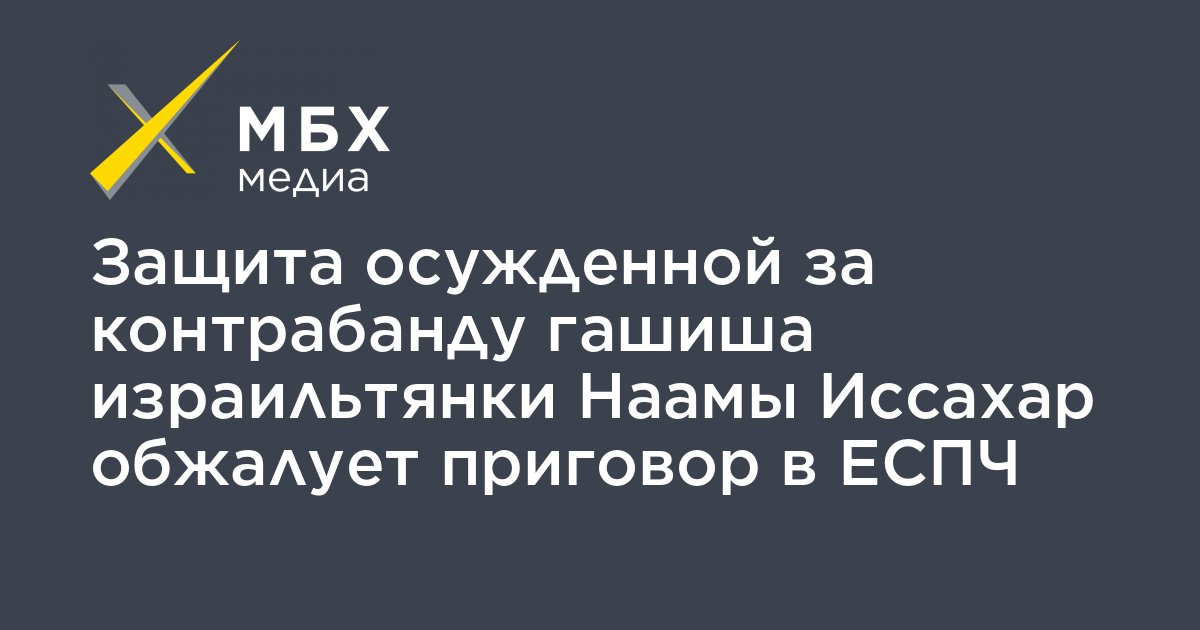 Защита осужденной на 7,5 лет за контрабанду гашиша израильтянки Наамы Иссахар готовит жалобу в ЕСПЧ. Об этом «МБХ медиа» сообщил адвокат, партнер коллегии адвокатов Pen & Paper Вадим Клювгант.