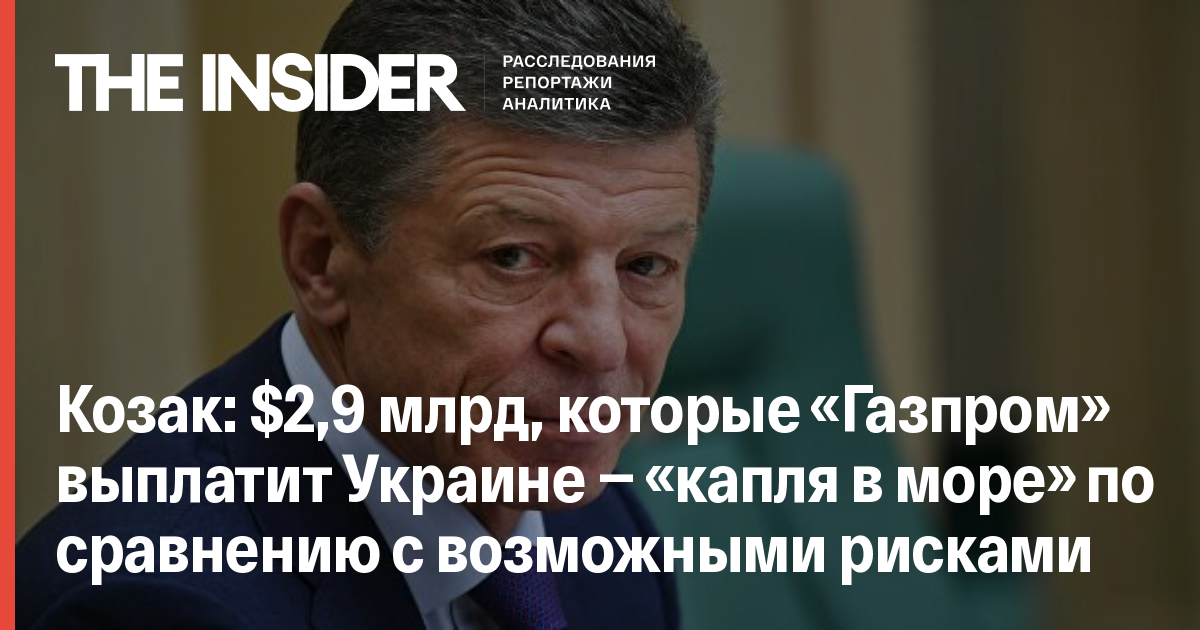 Козак: $2,9 млрд, которые «Газпром» выплатит Украине — «капля в море» по сравнению с возможными рисками