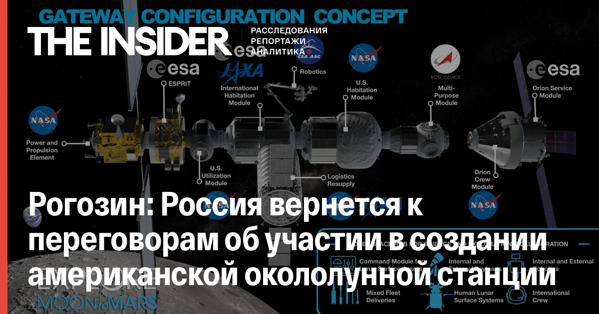 В 2017 году «Роскосмос» и NASA заключили соглашение о совместном создании станции. Однако позднее Рогозин заявил, что Россия откажется от участия в проекте, так как ей отведена недостаточно большая роль — создание шлюзового модуля и систем жизнеобеспечения.
