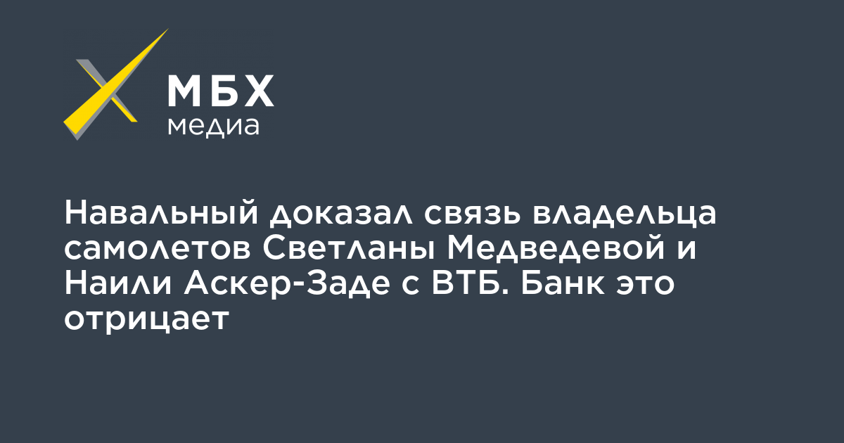 Навальный доказал связь владельца самолетов Светланы Медведевой и Наили Аскер-Заде с ВТБ. Банк это отрицает