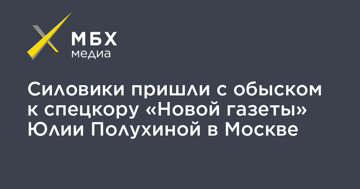 Сотрудники Следственного комитета пришли с обыском к спецкору «Новой газеты» Юлии Полухиной, об этом «МБХ медиа» сообщила пресс-секретарь издания Надежда Прусенкова.