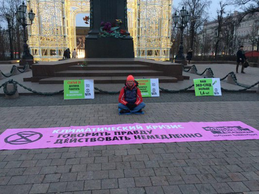 В Москве на Пушкинской площади полицейские задержали участника одиночного пикета на климатическую тематику Константина Фокина. Об этом он сам рассказал ОВД-Инфо.