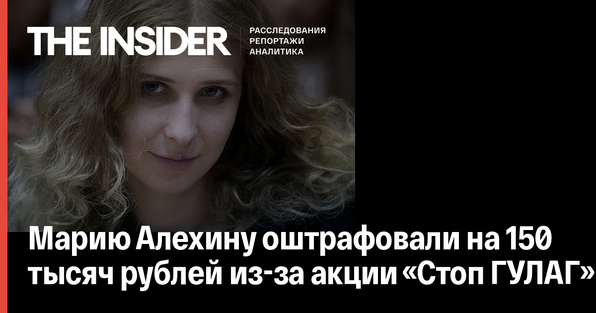 Замоскворецкий районный суд оштрафовал участницу Pussy Riot Марию Алехину на 150 тысяч рублей из-за акции «Стоп ГУЛАГ». Об этом сообщает «МБХ медиа».