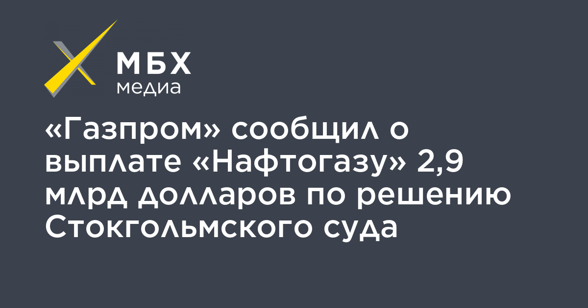 «Газпром» сообщил о выплате «Нафтогазу» 2,9 млрд долларов по решению Стокгольмского суда