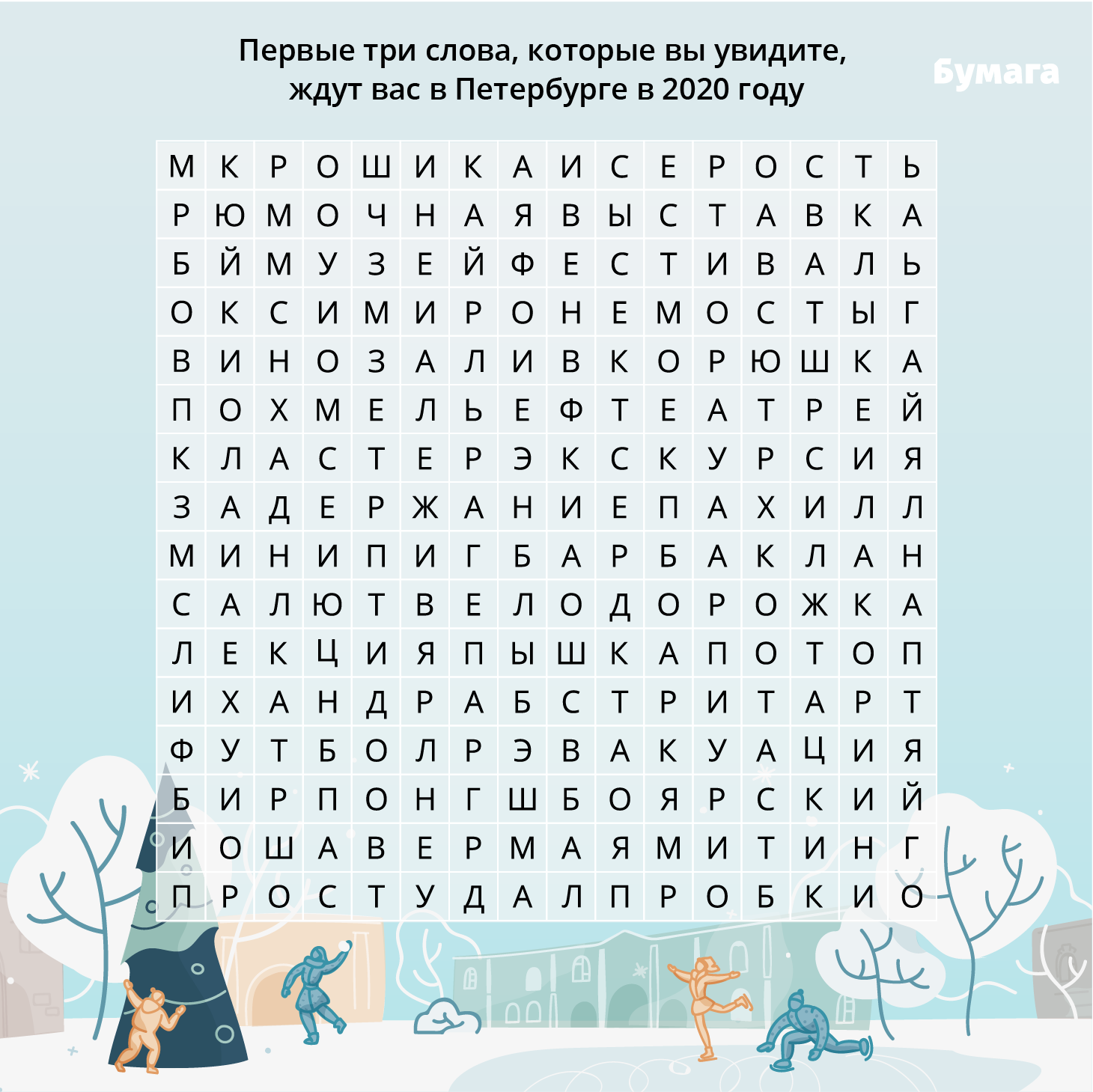 К Новому году «Бумага» подготовила праздничное гадание — вы сможете узнать, что ждет вас в Петербурге 2020 году. Просто посмотрите на картинку!