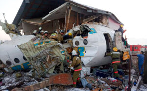 Самолет рейсом из крупнейшего города страны Алма-Аты в столицу — Нурсултан — не смог набрать высоту при взлете. Он пробил бетонное ограждение аэродрома и столкнулся с двухэтажным строением в жилом квартале. Здание, в которое врезался самолет, было пустым и нежилым.