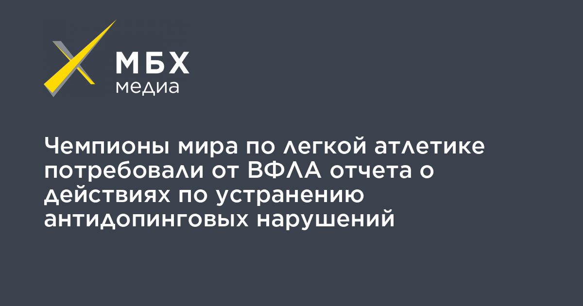 Чемпионы мира по легкой атлетике, завоевавшие для России две золотые и одну серебряную медали, потребовали от Всероссийской федерации легкой атлетики разъяснений о том, что она сделала для устранения нарушений антидопинговых правил. Об этом спортсмены написали в открытом письме в ВФЛА.