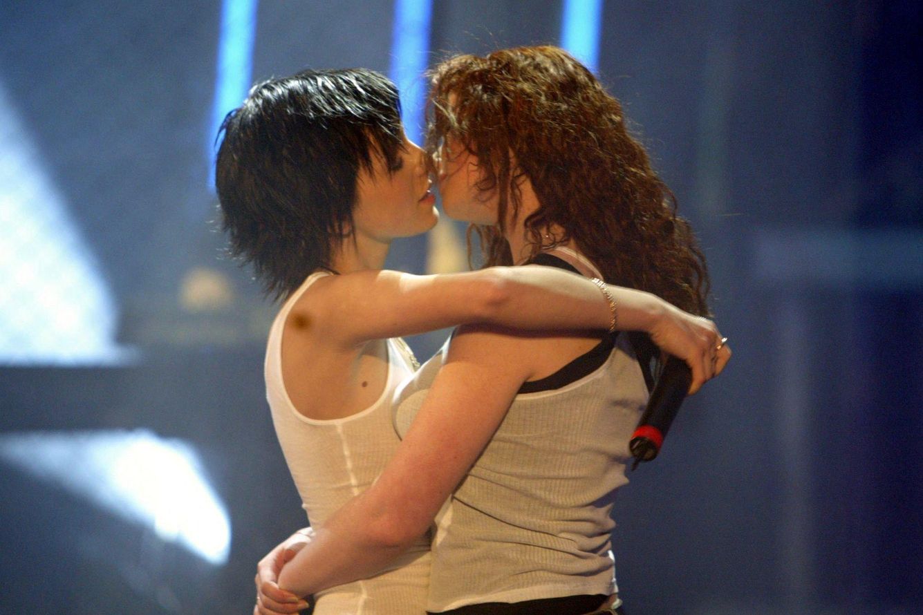 В 2000 году 16-летняя Лена Катина и 15-летняя Юля Волкова ворвались в музыкальный мир со своим клипом «Я сошла с ума», где, одетые в школьную форму, они целуются под дождем и открыто признаются, что любят друг друга. Позже вышел их дебютный альбомом «200 по встречной», где песен на ЛГБТ-тематику еще больше, а клипы на них — еще откровеннее (не отставали и промо-материалы). Концерты дуэта соответствуют: на каждом выступлении Лена и Юля вытаскивают на сцену двух юношей и двух девушек, раздевают их до пояса и просят целоваться друг с другом.