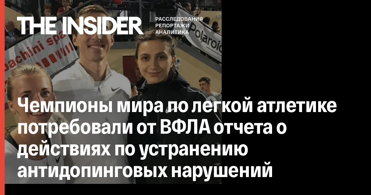 Чемпионы мира по легкой атлетике — Мария Ласицкене, Сергей Шубенков и Анжелика Сидорова, завоевавшие для России две золотые и одну серебряную медаль, потребовали от Всероссийской федерации легкой атлетики разъяснений о том, что она сделала для устранения нарушений антидопинговых правил. Об этом спортсмены написали в открытом письме в ВФЛА, которое опубликовано в соцсетях спортсменов: