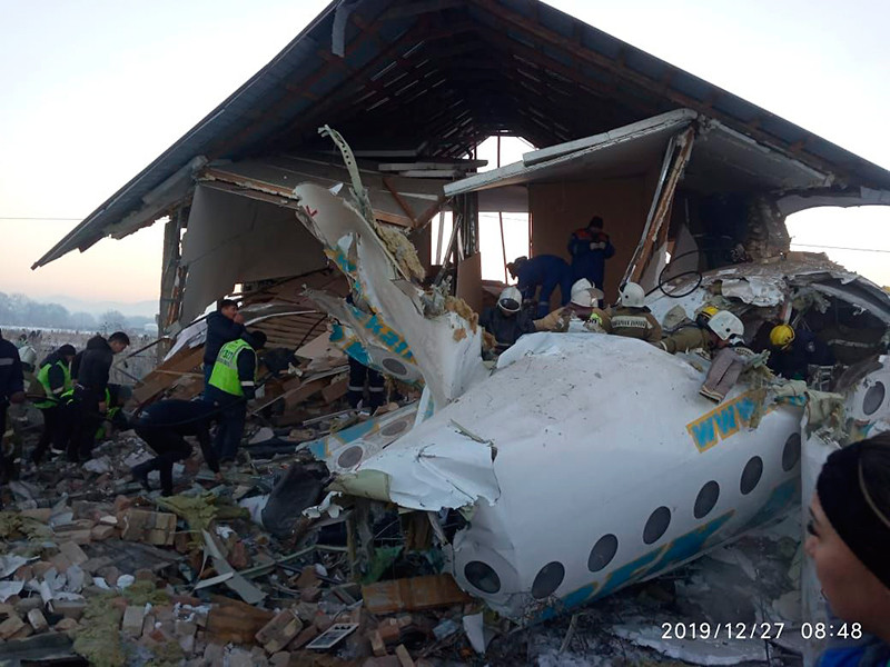 Утром 27 декабря самолет авиакомпании Bek Air рейсом Алма-Ата - Нур-Султан, при взлете потерял высоту, пробил бетонное ограждение и столкнулся с двухэтажным строением. На борту были 98 человек, в том числе пять членов экипажа. При взлете лайнер коснулся хвостом взлетно-посадочной полосы. По словам спасшихся пассажиров, перед катастрофой самолет вибрировал, а когда он оторвался от земли, люди почувствовали сильный удар. Один из пассажиров рассказал, что самолет дважды подкинуло вверх и дважды ударило об землю. Также отмечалось, что во время аварии стоял густой туман.