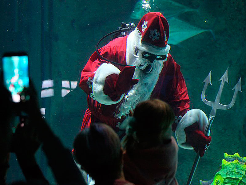 Дед Мороз с аквалангом в аквариуме с акулами / АГН "Москва" / фото: Ведяшкин СергейЕсли на права Деда Мороза может иногда претендовать Санта-Клаус, на место «Советского шампанского» — более качественные напитки, а снежки часто не лепятся из-за изменения климата, то сельдь под шубой, оливье, катания, ночные хождения пока никто не оспаривает. Поэтому, по мнению экспертов, депутатский список требует как минимум уточнения. Тем более что в случае внезапной срочной угрозы определенному наследию этот орган может по просьбе страны, которая обеспокоена возможностью исчезновения какого-то объекта, без очереди включить его в список.