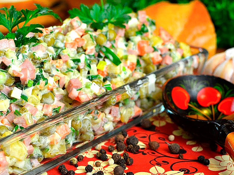 Отобранные традиции также, на экспертный взгляд, не очень полезны для человечества. По мнению большинства диетологов, чрезмерное наличие майонеза в оливье, сельди под шубой и салате «Мимоза» весьма опасно для желудочно-кишечного тракта. Особенно учитывая то, что корнеплоды используются вареные: после варки повышается их гликемический индекс, они могут быть опасны для страдающих диабетом, а кроме того, легко переводятся в жировые клетки. Историки кухни считают, что эти блюда появились и стали действительно популярны во времена дефицита в СССР в 60–70-х гг. XX века. Майонез придает сытность простейшим продуктам, которые составляют указанные салаты.