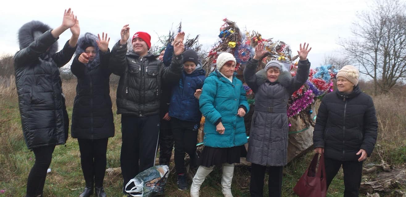 В поселке Севастопольский Калининградской области местные жители украсили к Новому году пень в центре населенного пункта. Полгода назад во время благоустройства территории, спиленное дерево выкорчевали и не убрали.