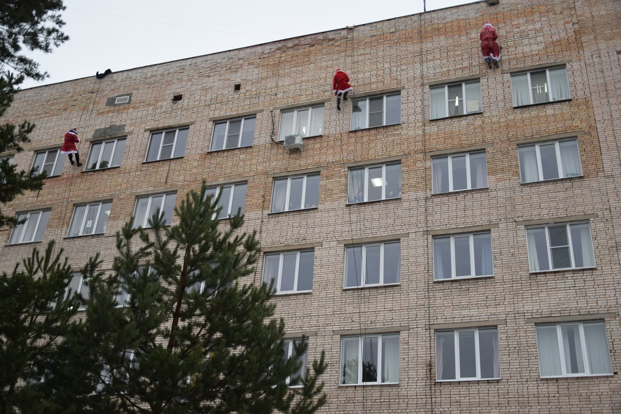 Новгород: Дед Морозы-альпинисты поздравили пациентов детской больницы