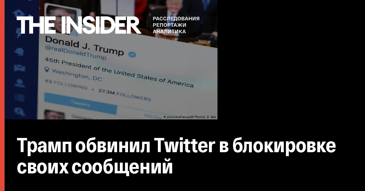 Твит президента США Дональда Трампа, в котором раскрывалась личность предполагаемого осведомителя, чья информация легла в основу процедуры импичмента, был заблокирован компанией Twitter. Трамп обвинил компанию в том, что эта блокировка отразилась на аккаунтах миллионов пользователей.