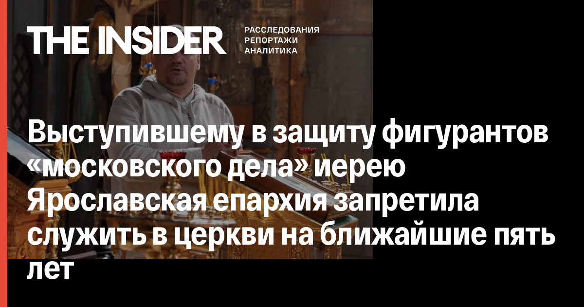 Выступившему в защиту фигурантов «московского дела» иерею Ярославская епархия запретила служить в церкви на ближайшие пять лет