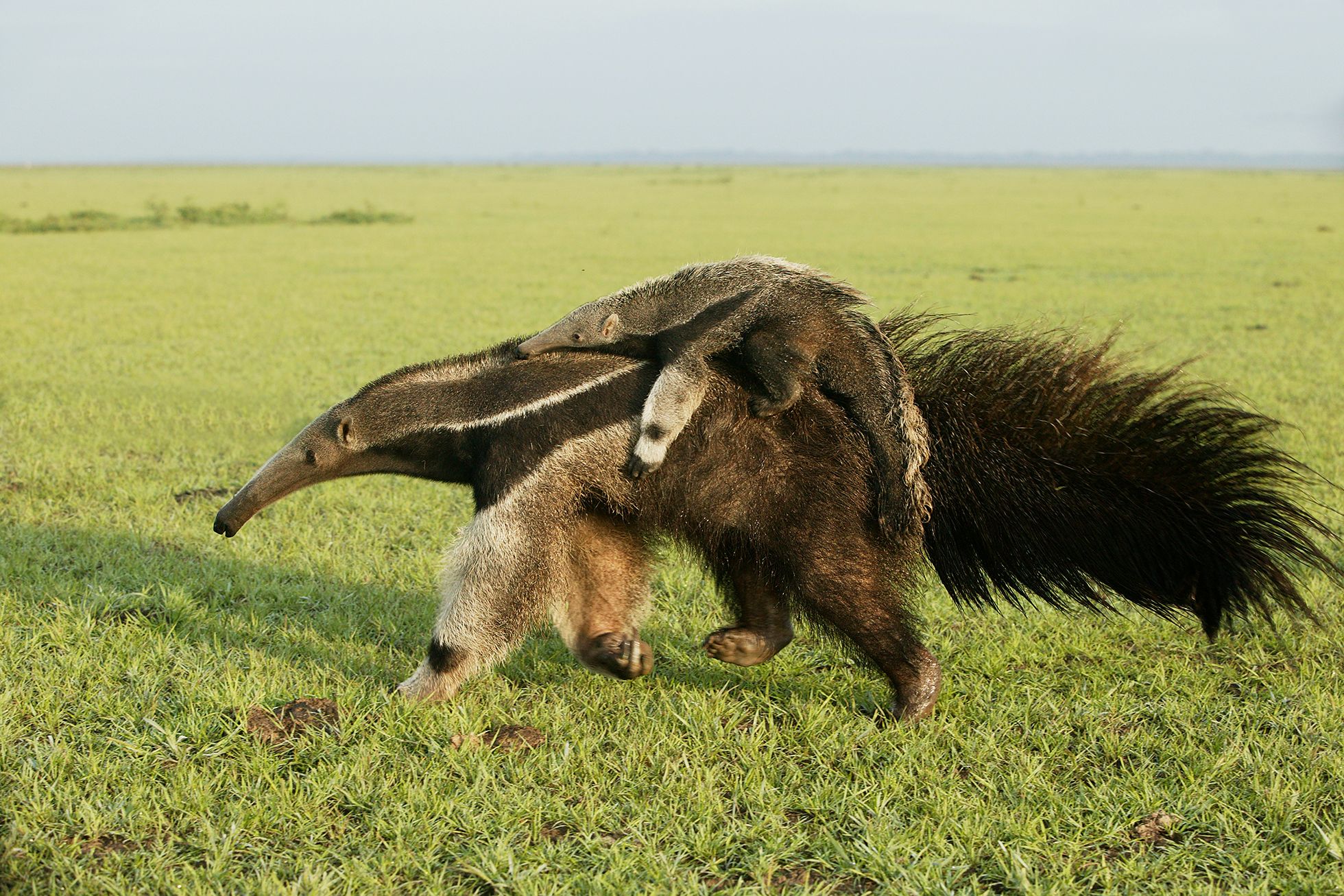 Муравьеды — самые стильные ребята на свете. Достаточно взглянуть на их пушистые хвосты, напоминающие гигантские пипидастры. Муравьеды катают своих детенышей на спине. У них вытянутая мордочка и совсем нет зубов, зато есть длинный язык, которым они достают всяких букашек. Еще муравьеды часто встают на задние лапы, а передние поднимают вверх, будто внезапно вспомнили, что не выключили утюг. Эта поза — идеальный эмодзи для ситуаций, в которых ничего непонятно.