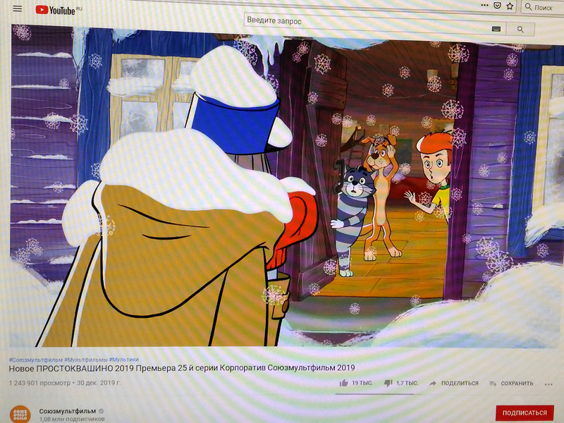 Новогодняя серия "Возвращения в Простоквашино" набрала 1 млн просмотров на YouTube за три дня